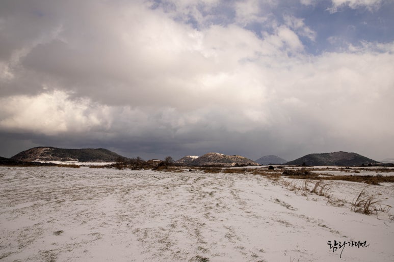 제주 광활한 들판에 자리 잡은 제주도 작은 오름, 가메옥